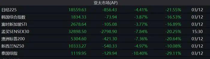 另,3月12日,韩国综合股指200(KOSPI200)指数期货12日一度暴跌超过5%,导致暂停交易5分钟。这是韩国股市自2011年10月以来,首次启动临时停牌。同日,印尼股市跌幅超过5%,触发了停盘机制。