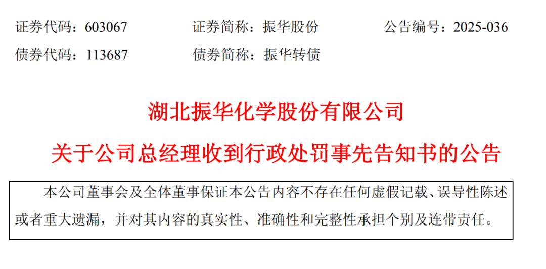 今年1月12日晚间,振华股份公告称,柯愈胜于2025年1月10日收到《中国证券监督管理委员会立案告知书》,因其涉嫌短线交易振华股份股票,根据《中华人民共和国证券法》《中华人民共和国行政处罚法》等法律法规,决定对其立案。