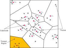 以二维情况为例,两个幅度决定了平面上的一点。而这个平面事先按照概率已经划分为N个小区域,每个区域对应着一个输出结果(码书,codebook)。由输入确定的那一点落在了哪个区域内,矢量量化器就会输出那个区域对应的码字(codeword)。矢量量化的好处是引入了多个决定输出的因素,并且使用了概率的方法,一般会比标量量化效率更高。