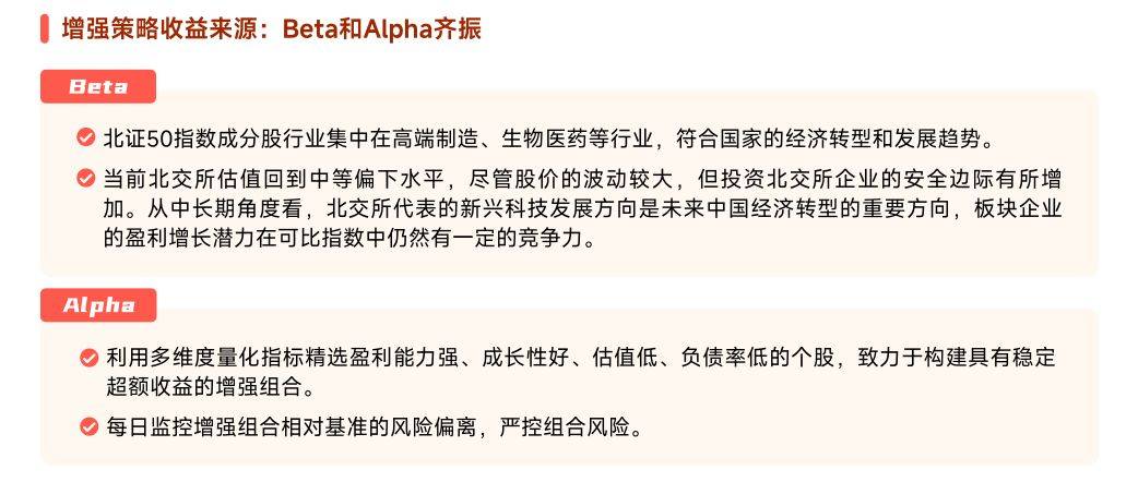如果想投资北证50指数,关注能够大额申购的创金合信北证50成份指数增强A参与投资,力争在增强策略收益来源上Beta和Alpha齐振,或许是不错的选择。
