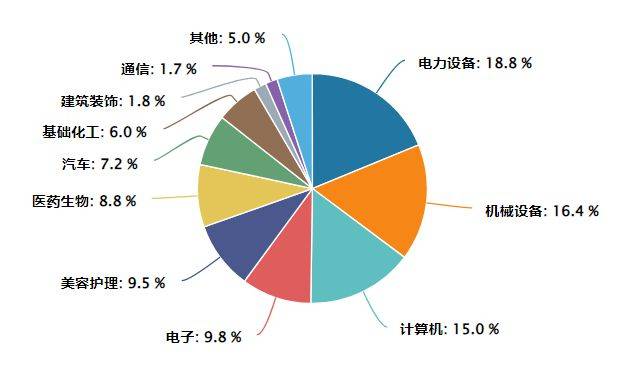从申万一级行业看,北证50指数但主要集中在几个特定领域,包括电力设备(18.8%)、机械设备(16.4%)、计算机(15.00%)、电子(9.8%)、美容护理(9.5%),合计市值权重达69.5%。此外,北证50指数还覆盖多个行业,这有助于分散单一行业风险,提高指数的稳定性和抗风险能力。