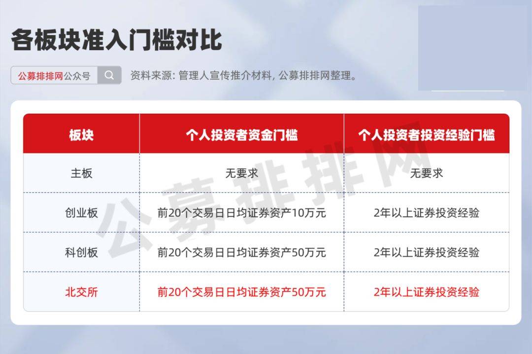 从各板块的资金准入门槛来看,北交所与科创板相当,而且还要略高于创业板,那么个人投资者要想直接参与北交所的交易,是有一定难度的。