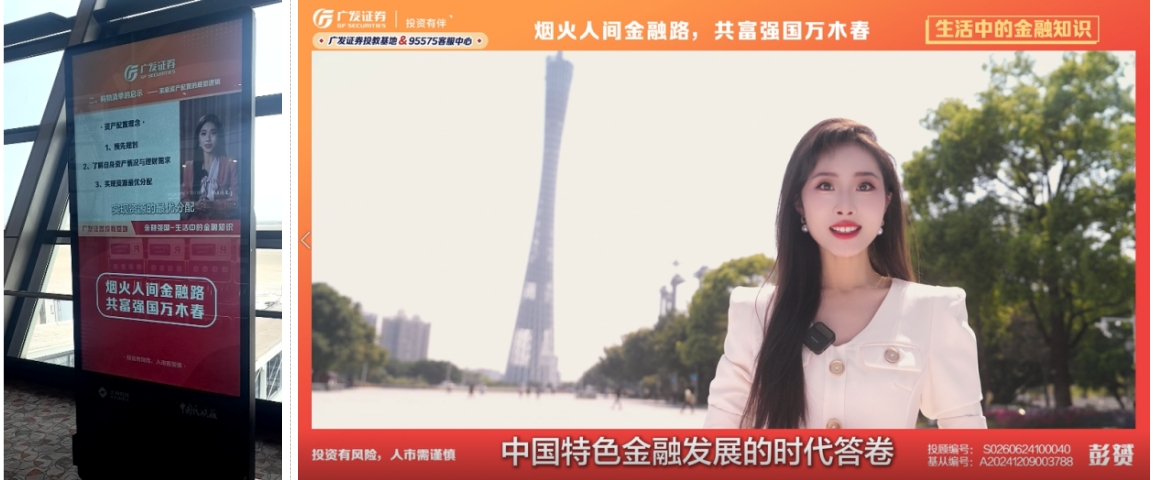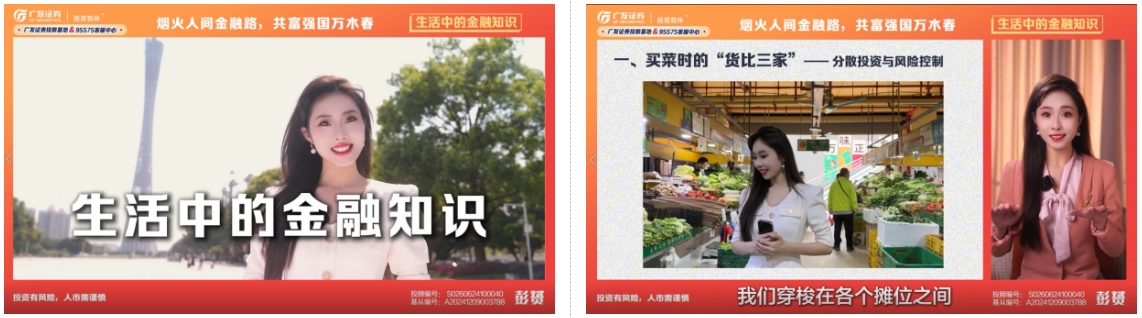 在第七个“全国投资者保护宣传日”投教活动开展之际,广发证券投教公益短片《烟火人间金融路,共富强国万木春》登陆上海虹桥与浦东国际机场,通过两大交通枢纽的200余块电子屏每日高频播放,以“金融即生活”的创意视角,将分散投资、资产配置、复利效应等专业概念融入菜市场、超市、公园等生活场景。这部短片以“烟火气”叙事打破金融知识传播的壁垒,日均触达旅客超50万人次,展现了金融机构以创新投教服务普惠大众、助力金融强国建设的责任担当。