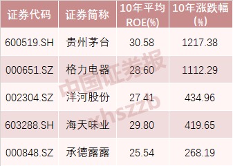 Wind数据显示,在2009年至2019年10年时间内,净资产收益率ROE(扣除/摊薄)连续超过20%的上市公司,A股仅有5家上市公司,分别是贵州茅台、海天味业、格力电器、洋河股份、承德露露。