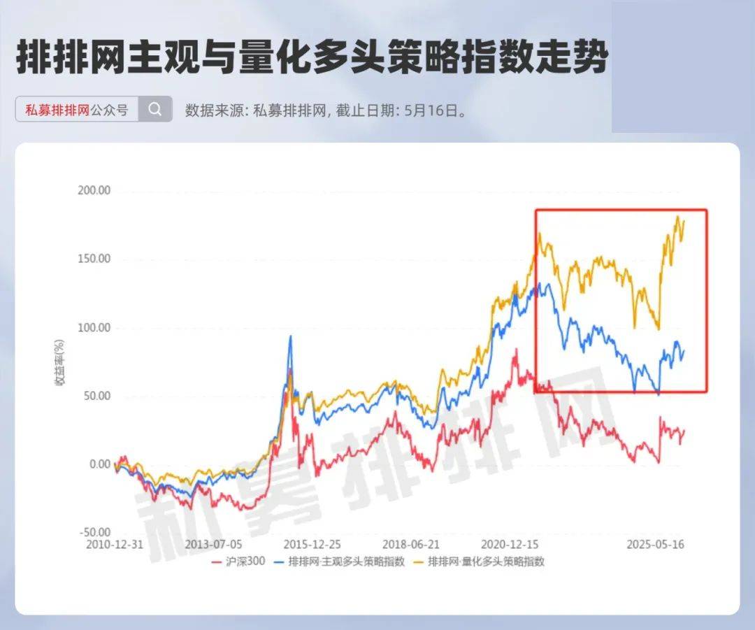 近年来关于量化投资的讨论不绝于耳,随着AI时代的到来,量化投资在辅助研究、辅助投资等方面发挥着越来越大的作用,量化投资者的“武器库”也更加强大。根据私募排排网数据,排排网主观多头策略指数与排排网量化多头策略指数之间的差距逐步发散,二者之间的“剪刀差”呈现逐步扩大的趋势。