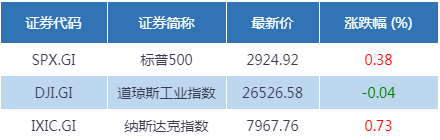 美股:美国三大股指涨跌不一,道指微跌0.04%,纳指涨0.73%,标普涨0.38%。