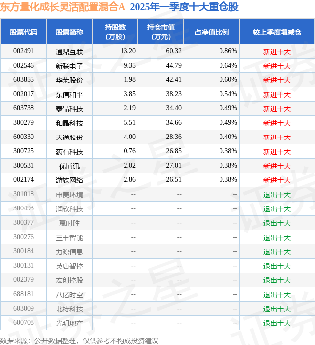 根据2025基金Q1季报公募基金重仓股数据,重仓该股的公募基金共1家,其中持有数量最多的公募基金为东方基金的东方量化成长灵活配置混合A。东方量化成长灵活配置混合A目前规模为0.62亿元,最新净值1.3463(6月4日),较上一交易日上涨1.03%,近一年上涨33.59%。该公募基金现任基金经理为王怀勋。王怀勋在任的基金产品包括:东方量化多策略混合A,管理时间为2022年5月17日至今,期间收益率为-8.99%。