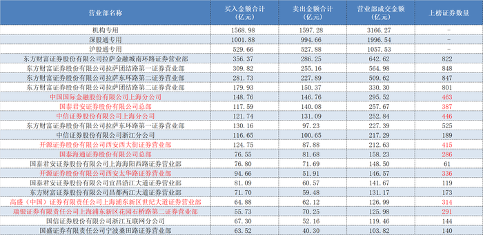表格:今年以来龙虎榜成交金额超过100亿元的营业部名单(其中红色字体的被标记为量化相关席位)数据来源:Wind、界面新闻整理