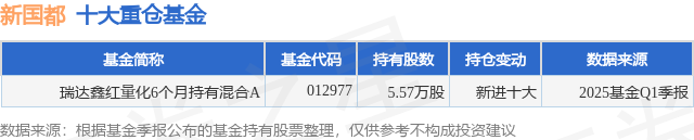 根据2025基金Q1季报公募基金重仓股数据,重仓该股的公募基金共1家,其中持有数量最多的公募基金为瑞达基金的瑞达鑫红量化6个月持有混合A。瑞达鑫红量化6个月持有混合A目前规模为0.18亿元,最新净值0.6421(6月13日),较上一交易日下跌0.63%,近一年上涨6.54%。该公募基金现任基金经理为袁忠伟。袁忠伟在任的基金产品包括:瑞达行业轮动混合A,管理时间为2021年6月9日至今,期间收益率为-9.55%;
