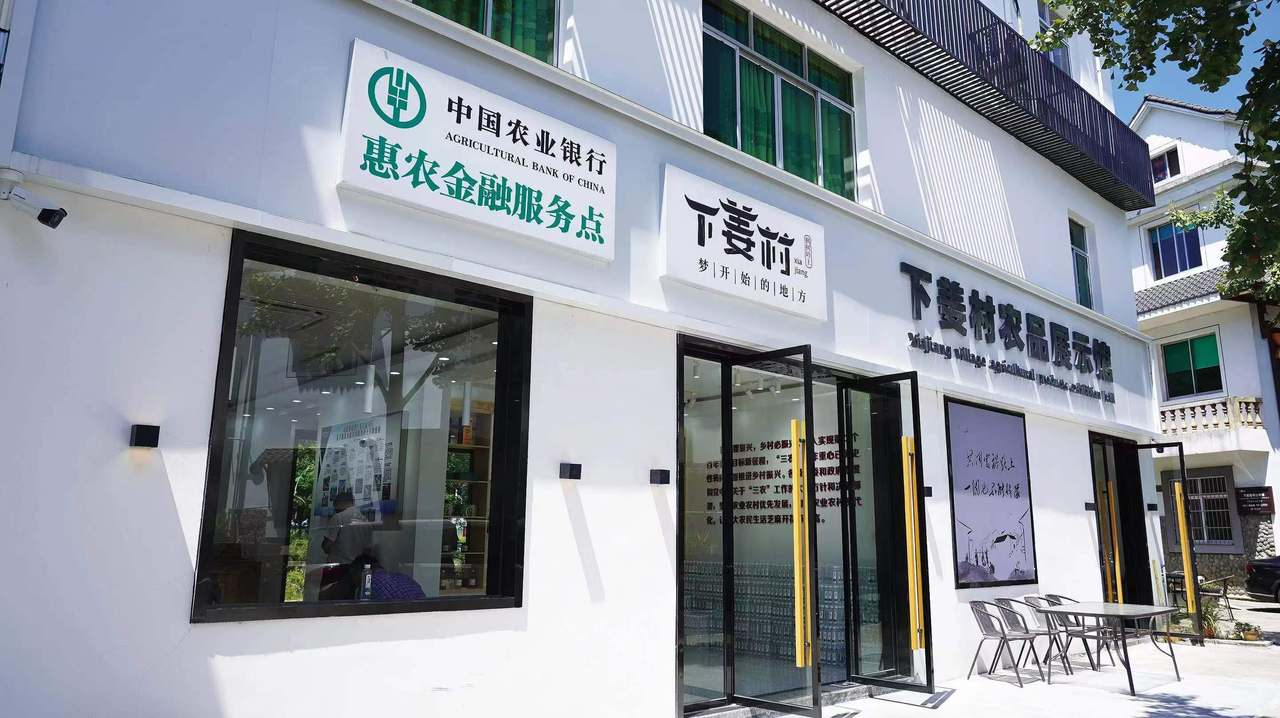 走进农行在下姜村搭建的“农品展示馆”,除了摆放的下姜村各种农特产,还有一台显眼的柜机,这是农行的自助金融服务终端,方便村民们在家门口便捷办理金融业务。